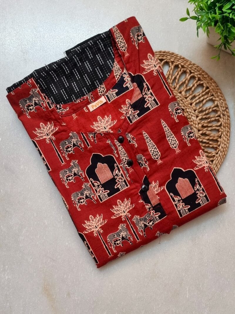 Original price was: ₹899.00.₹799.00Current price is: ₹799.00.Make a bold style statement while enjoying all-day comfort with this Black & Red Printed Half & Half Blended Cotton A-Line Designer Nighty for Women. Designed for modern women who love comfort with a touch of elegance, this nighty is made from premium blended cotton fabric that feels soft, breathable, and gentle on the skināperfect for Indian weather and daily wear.