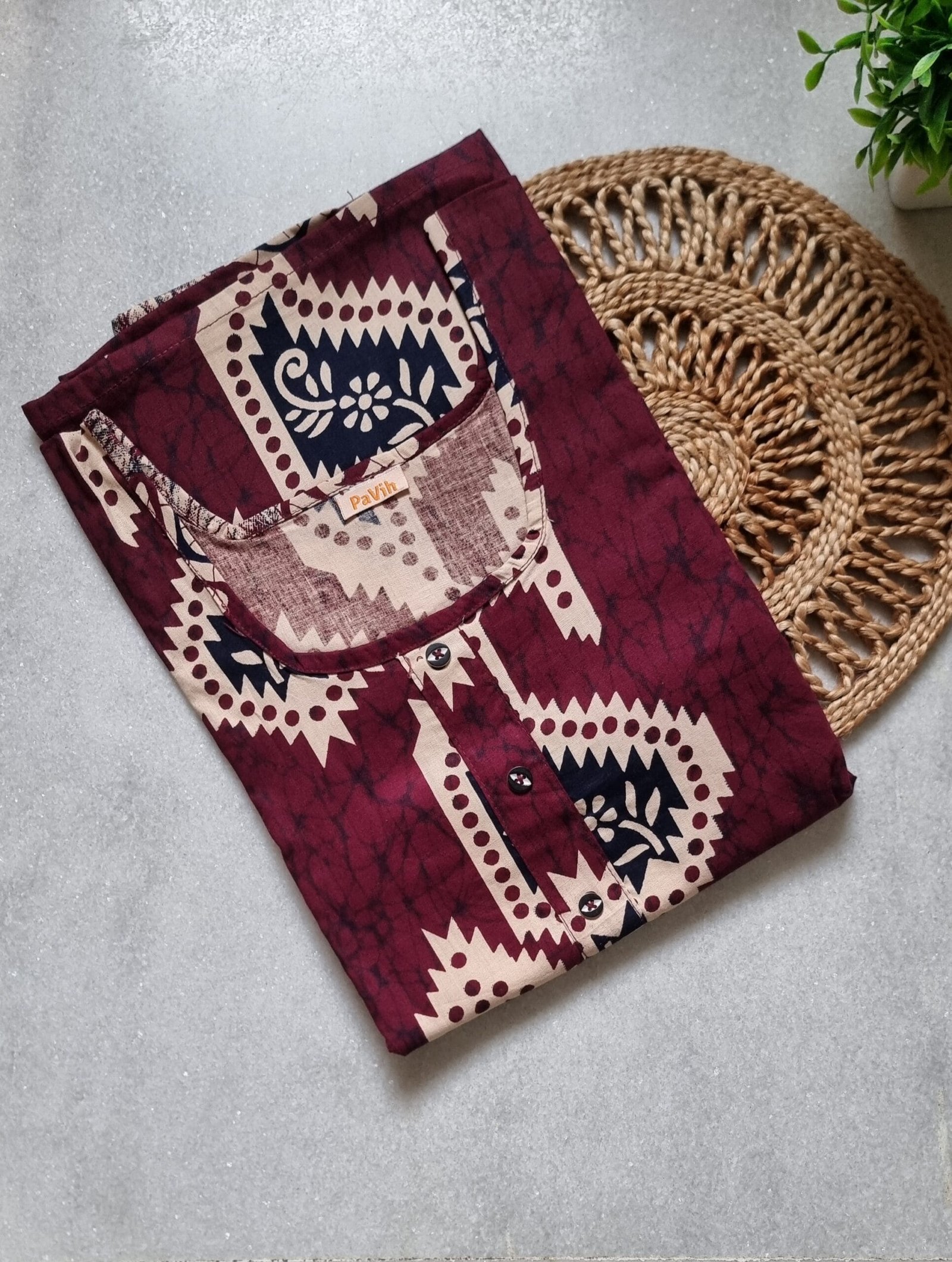 Ideal for customers searching to buy cotton nighty online, cotton kaftan India, or batik print cotton nightwear, this piece blends tradition, comfort, and modern styling beautifully.