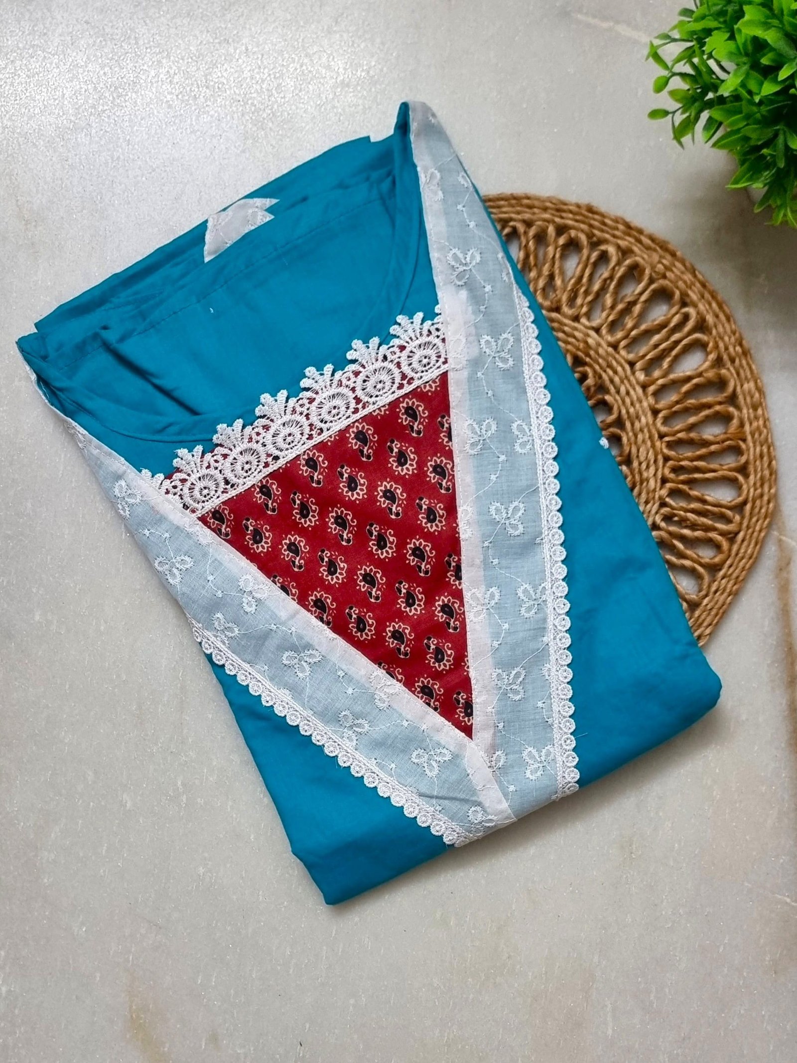 The beautiful lace-trimmed neckline adds a graceful designer touch, while the contrast printed panel enhances its ethnic charm. Featuring a relaxed A-line nighty for women, this silhouette drapes effortlessly, offering ease of movement and a flattering fit. Whether you search for an A line nighty for women or a stylish cotton night gown for women, this piece delivers comfort without compromising elegance.