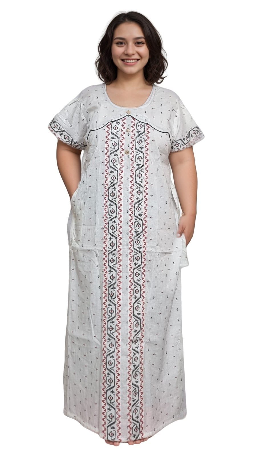 Designed as a designer cotton nighty, this piece also qualifies as a pure cotton designer nighty suitable for daily use. The maxi length provides modest coverage, making it a popular maxi nighty cotton option and a stylish cotton night gown for women. Ideal for lounging and sleeping, it doubles as a cotton night gown for daily wear and dependable daily wear nighty.