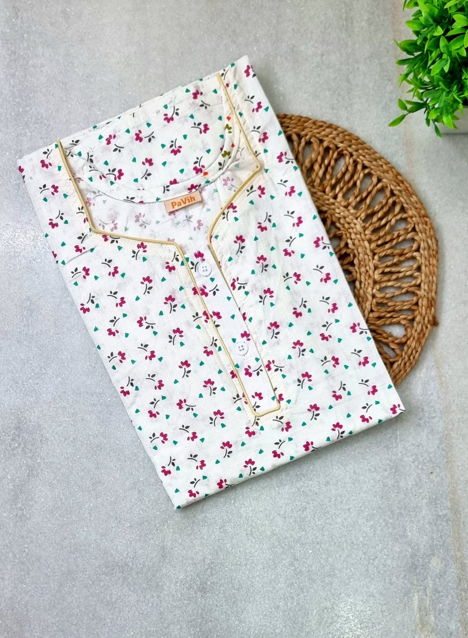 Wash and Care Instruction: Hand wash or machine wash in cool water is recommended. Dry the nightwear inside out preferably in the shade.